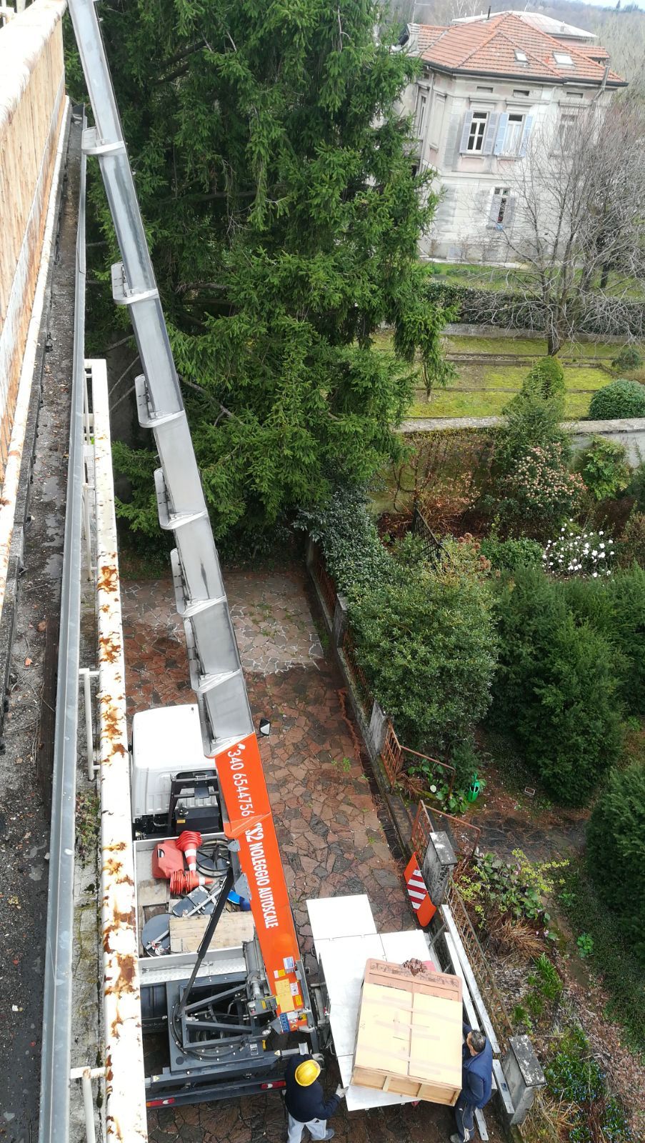 La nostra autoscala ha la portata massima di 400 kg a secondo del piano e dell'inclinazione è possibile anche sollevare pianoforti verticali e addirittura i pianoforti a coda.